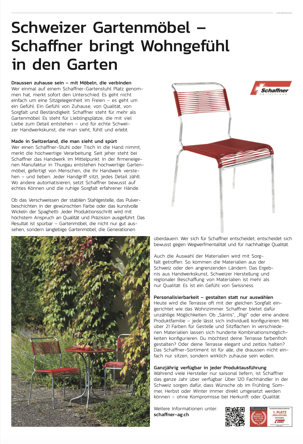 We are delighted that our garden furniture was recently featured in a full-page advertisement in the Tages-Anzeiger newspaper. The publication is one of the media with the widest reach in Switzerland - so we are all the more proud to be able to present our products to a wide audience.